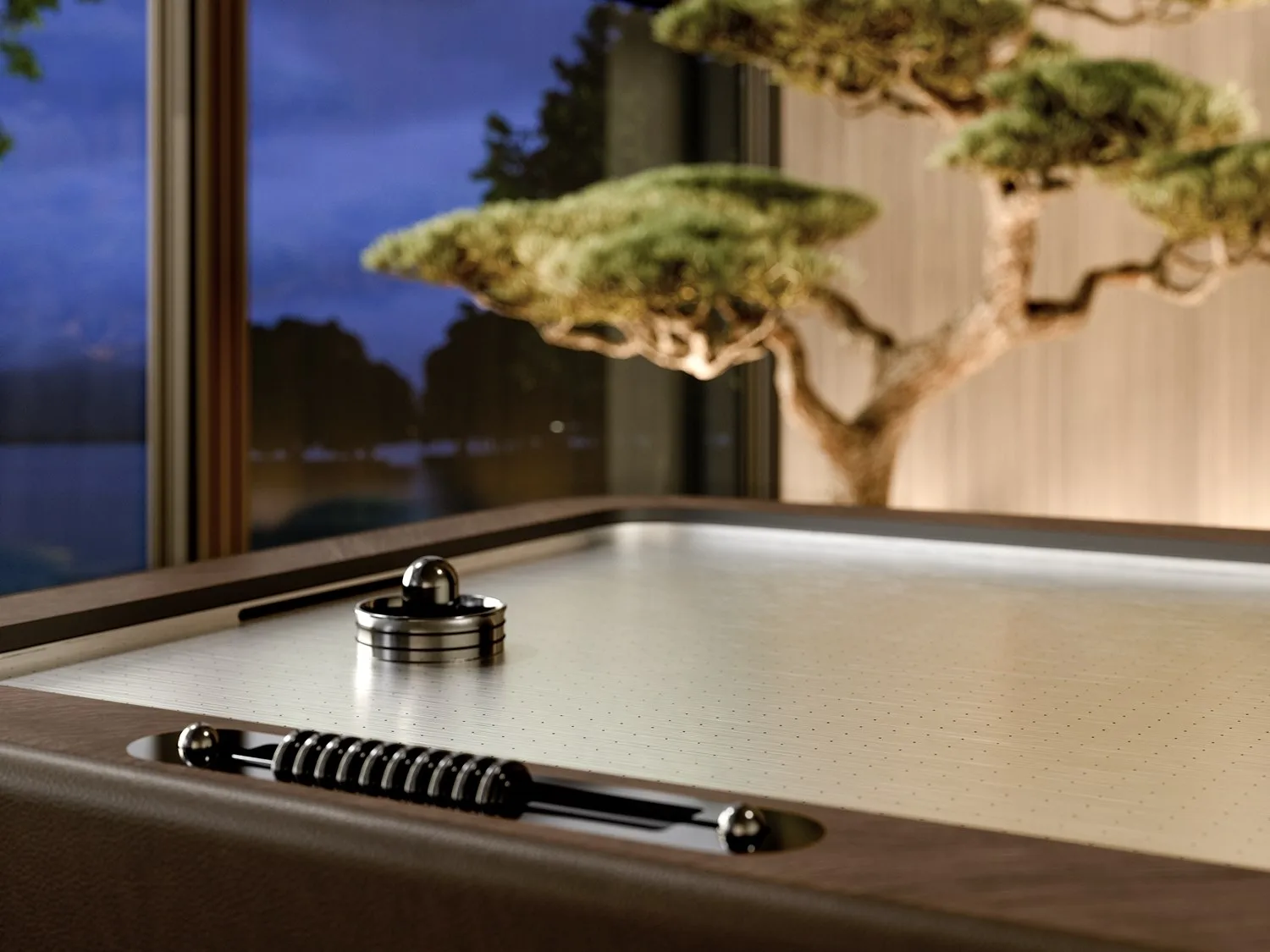 этот стол оснащен улучшенным двигателем и вентиляторами, чтобы обеспечить отличную плавность игры. Двигатель создает воздушную подушку на игровом поле, чтобы диск скользил, как по льду.