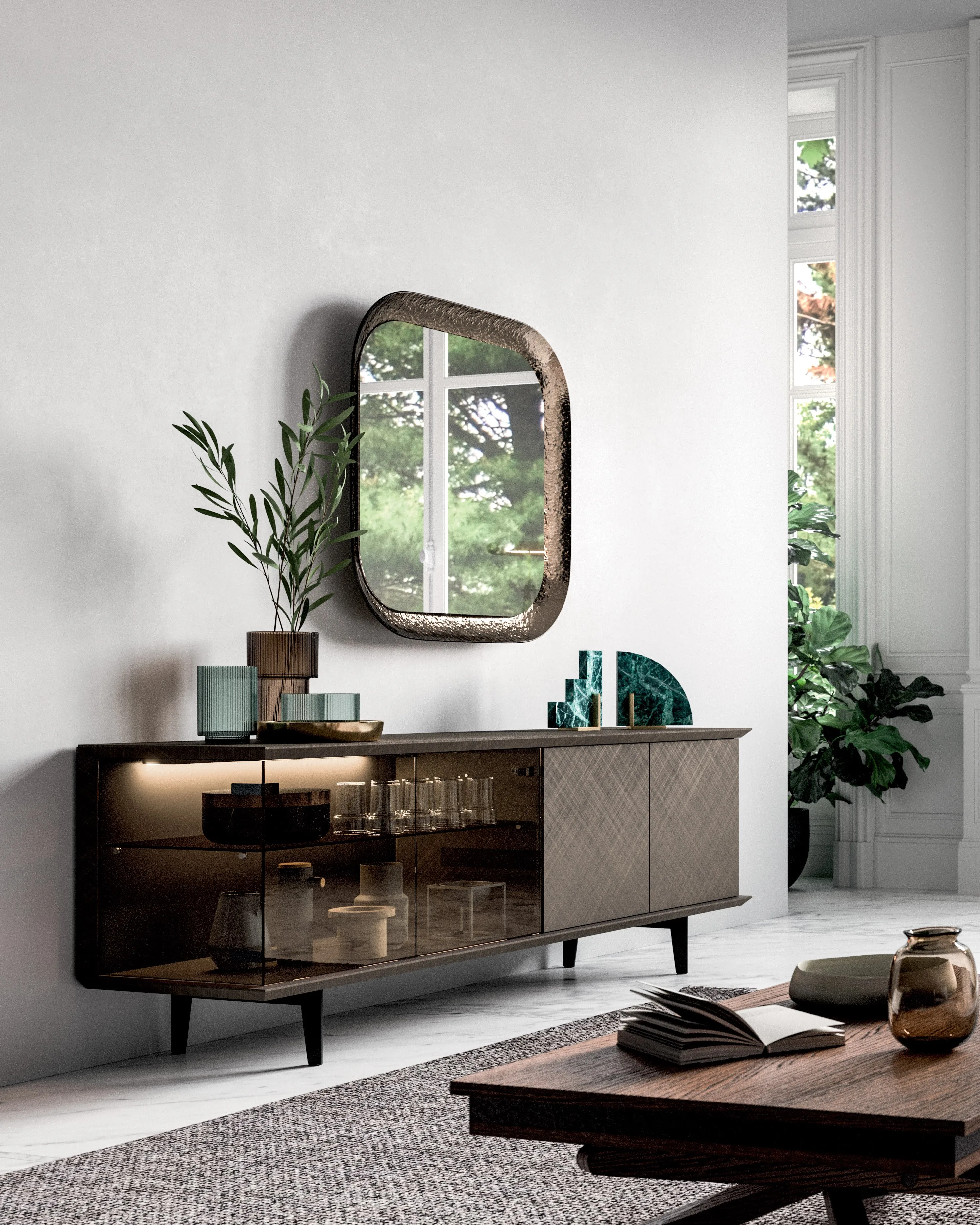 Brera Glass - это шкаф в классическом стиле и легкая, но вместительная конструкция с хрустальными полками. выпускается в двух вариантах: первая простая и симметричная, а вторая-знакомая и уютная благодаря стеклянным дверям, через которые можно увидеть полки с подсветкой.